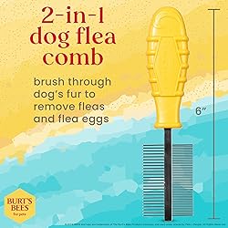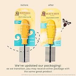 - Since 1984, Burt’s Bees® has been harnessing the power of nature to nourish the skin and body. We believe that pets are family, so we are bringing the same natural attention and care to your closest furry friends. The plastic handles on these Burt’s Bees for Pets Grooming Tools are made from recycled plastics collected from coastal communities. They help you groom your pet comfortably and effectively, while being part of the solution for a plastic-free ocean. Additionally, our paper packaging is made of 35% post- consumer recycled content. Burt’s Bees for Pets Dual Sided Flea Comb allows you to groom your dog at home with ease. Great for removing debris as well as fleas and flea eggs, this double-sided comb is a 2-in-1 dog grooming brush. It helps remove fleas and flea eggs without irritating your dog's skin, with gentle rounded steel pins, making it more comfortable than ever to keep your pet clean and flea-free. Plus, it’s easy to use - simply comb through your dog's hair with the wider-toothed side to remove tangles, then flip it over to the fine-toothed flea comb side to remove fleas & their eggs. This double-sided design will help reduce discomfort your pet may experience with traditional combing. DIRECTIONS: For regular combing, gently brush with the wider-toothed side in the direction of fur growth. Start at the front of your pet and work your way back. Repeat until the brush glides through the coat with ease. To use as a flea comb, use the fine-toothed side, start at the base of the skin and comb outward. Start at the rear of pet and work your way forward. During each pass-through, the coat dip flea comb in soapy water to remove fleas. Repeat as needed.