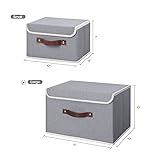 ANMINY Storage Bin with Lid Storage Boxes with PU Leather Handles PP Plastic Board Decorative Foldable Lidded Cotton Linen Fabric Home Cubes Baskets Closet Organizer Container - Gray, Large Size