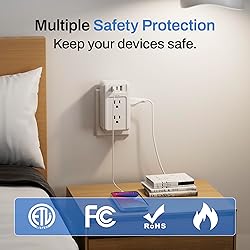 - Built-in intelligent technology, our multiple plug outlet comes with 3 high-speed USB ports to automatically detect charging devices and provide best charging speed, up to 3.4A/5V per port, so this spaced outlet splitter can quickly charge your phone, iPad, smart watch or earphones.