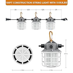 NS 100ft LED Construction String Lights, 150W 15000lm LED String Work Lights, Temporary Work Lights Linkable Industrial String Work Lights with Hook for Jiobsite, Outdoor Lighting (10)