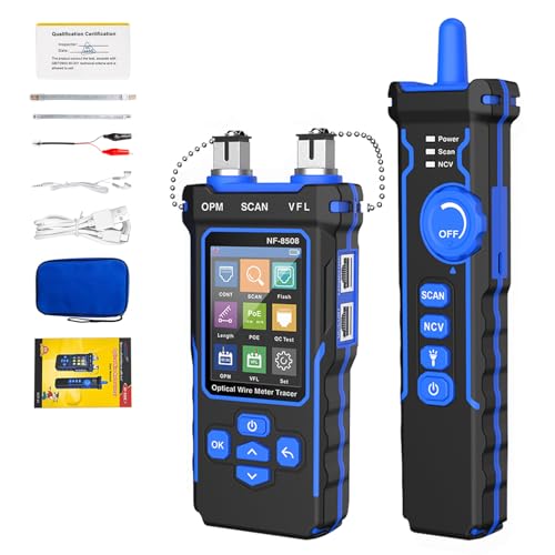 NF8508 Network Cable Tester with Optical Power Meter, Multifunctional Rechargeable Network Tool VFL, RJ11 RJ45/PoE Tester/CAT5 CAT6/NCV/10mw Visual Fault Locator/Length Measurement,Phone line Tracer