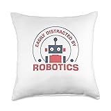 Distracted by Robotics Cute Robot Engineering Throw Pillow