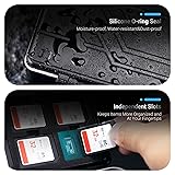 - Product Highlights Holds up to 26 USB flash drives, 9 SD cards and 18 Micro SD cards neatly, no fumbling for the right item through a tangled mess. Made of high-impact ABS plastic material, sturdy and durable. Silicone O-ring seal ensures a dry and safely protected inside. Ergonomic locking design built for easily open and close. Customized EVA foam neatly holds the USB flash drives and memory cards snugly in place within the slots, offers the utmost in protection. Comes with 2 sheets pre-print number stickers and 1 sheet notepaper, easy to organize and retrieve items.