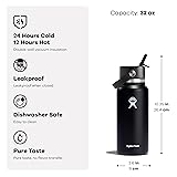 - La MEJOR BOTELLA: Una botella de agua aislada de 32 oz de boca ancha con la tapa de pajita Flex de Hydro Flask—fácil de llenar, fácil de beber. Abre, agrega tu hielo y da vuelta para beber. El acero inoxidable aislado mantiene fría hasta por 24 horas.