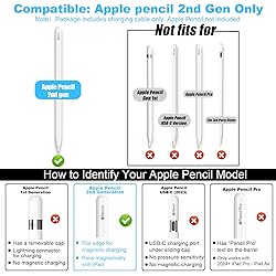 Exclusive Design: The charging cord FITS FOR Orginal Apple pencil ✅ 2nd Gen ONLY (❌ Not Apple pencil 1st Gen / ❌ Not Apple pencil USB-C / ❌ Not Apple pencil Pro / ❌ Not 3rd-Party” ),PLEASE CHECK your MODEL before purchasing .The package include 1 Pcs USB charger ,not including the power wall and pencil Convenient Charger: The USB charger adapter includes a magnetic adsorption surface dock with wireless charging function and a 3.3Ft USB C cable , easy access to charge your Apple pencil 2nd Generation anywhere with the USB power source and save at least 10%-15% for your iPad battery power, extend the Ipad using time Safe Charging Dock: Built in the chip with overvoltage and overcurrent protection function, The pencil will automatically stop charging at 95%-100% power ,avoid over charging for your pencil and protect your iPad pencil battery. Indicator Light: View the charging status with the indicator light, power on the charger stand with the green lights blinking for 3 seconds, when the breathing light flashing, it means it is charging and when fully charging, it will turn to the solid green light . Sleek Design: Slim charging stand without taking up space, the anti-slip stand base holds your apple pencil 2 on desk or table stable and not move, convenient to carry out and packed into the bag or backpack, power your iPad pen on a power bank, computer,PD or car convenient for outside travelling