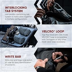 100% Nylon Made in the USA and Imported STACKABLE STORAGE CUBES – Created in conjunction with Kyle Lamb of Viking Tactics, the VTAC cube storage organizer allows you to deploy your gear like ammo, spare magazines, or medical supplies where you need it most. THE PERFECT SOLUTION FOR TRAVEL – Our cube storage bag offers a rugged storage solution during road travel. Use it for car tactical storage, as ammo storage containers, or medical storage containers, keeps your gear where you need it. DISCREET GEAR STORAGE – There is a discreet tab system located on the bottom of each car storage cube. Just slide the tabs into the low-profile pockets on the top of a compatible cube and your tactical gear is secured. GRAB HANDLES FOR EASY CARRY – Side grab handles on the tactical carry bag allow for quick deployment. A write bar on the side of the cube storage bag allows for easy identification of the contents. AVAILABLE SIZES – The VTAC carrying storage bag is available in XS, SM, MD Flat, MD, LG, and XL sizes. A patent-pending interlocking tab system is designed to hold cubes together for transport and storage.