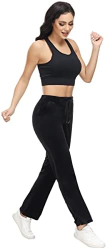 COZZIPLUS Women Velour Pant,Soft Velvet Sweatpant for Women, Straight Leg High Waist Velour Lounge Pant with Pockets
