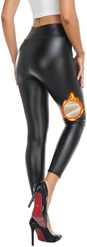 VOGUEMAX Women's Fleece Lined Faux Leather Leggings Thick High Waisted Winter Warm Pants Black Stretchy Sexy Tights