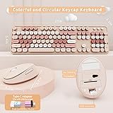 Wireless Keyboard and Mouse Combo, Ergonomic Full Size Typewriter Retro Round Keycaps Keyboard, Compatible with Windows, PC, Perfer for Home and Office Keyboards (Chocolate Color)