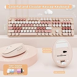❤【Delightful Chocolate-Colored Keyboard】 Inspired by the fusion of vintage typewriters and modern technology. This retro typewriter keyboard features a timeless design that blends style and functionality. It brings joy and elegance to every new day! ❤【Ergonomically designed Mouse】Based on human ergonomic design, the mouse has a comfortable pebble shape that helps relieve wrist pressure and prevents long hours of carpal tunnel use. ❤【Multi-functional Hotkeys and Mouse back button】Why don't you make working and learning easier? 15 hotkeys, Mouse back button and numeric keypad, mean the chocolate-colored keyboard is fully prepared for better study and work. 👉 How to activate hotkeys: Fn + F1~F12 or Shift + F1~F12 ❤【Ergonomic keyboard with stand】The elegant keyboard comes with legs to keep it at the best angle. The wireless portable keyboard with cute keycaps is easy to type as each key can be quickly responsive and tactile. ❤【No additional installation program & No Latency】Are you still worried about how to use it? Don't worry, our usage is Plug-and-play. They are super stable connections with no delays or dropped connections. ❤【Intelligent power-saving technology】The optical mouse operates at only 0.11 mA, if it is inactive for 20 seconds, it will automatically enter power saving mode and wake up easily by moving. ( Including battery ) ❤【Universal compatibility】This wireless keyboard and mouse combo is compatible with windows XP/Vista/7/8/10/X, Mac and other operating systems. It is suitable for desktop, Chrome-book, PC, laptop, computer, etc. ❤【WARRANTY】30-days hassle-free return policy & one-year warranty. 24/7 prompt & friendly customer service. ※Humanized service: If the USB connector is broken, a new USB connector can be re-sent for free. 【wireless keyboard and mouse combo】 【typewriter wireless keyboard】
