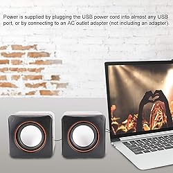 Cool and Cute Design: These speakers not only deliver great sound but also feature a cool and cute design. Whether you're enjoying music alone or sharing it with friends and family, these speakers are a visually appealing addition to your workspace or home. Ultra-Portable Mini Sound System: With this USB speaker, you can enjoy an ultra-portable mini sound system without the need for headphones or external speakers with cumbersome wires. Experience high-quality audio wherever you go, be it in your office, on a trip, or even during outdoor activities. Convenient USB Power Supply: Powering these speakers is easy and convenient. Simply plug the USB power cord into any USB port on your computer, laptop, or even a power bank. Alternatively, you can connect the speakers to an AC outlet adapter for constant power supply (adapter not included). No need to worry about charging, as these speakers solely rely on the USB port for power. Wide Compatibility: These speakers are suitable for use with a variety of devices including PCs, MP3 players, MP4 players, laptops, and more. Simply connect the speakers using the 3.5mm audio jack, and you're ready to enjoy your favorite music or multimedia content with improved sound quality. Compact and Lightweight: The compact and lightweight design of these speakers makes them highly portable. You can easily slip them into your bag or backpack and take them with you wherever you go. Whether you're traveling or simply wish to have better audio quality on the go, these speakers are a convenient companion.