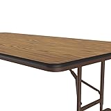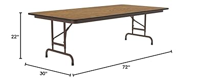 Correll Heavy Duty Adjustable Height Utility Folding Table, Melamine Top, USA Made, Strong Steel Apron, 30"x72", Medium Oak Top Brown Edge