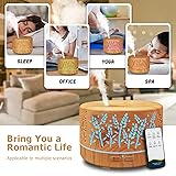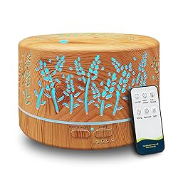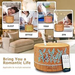 【Comfortable Sleep & Waterless Auto-off】: Essential oil diffusers,low noise<25dB,diffusers for essential oils large room improve sleep quality,aromatherapy diffuser use ultrasonic technology,mist is delicate,essential oils for diffusers for home relieve dry air in winter,oil diffuser large room humidifier improve room condition,diffusers for home aroma diffuser,waterless auto-off,scent diffuser don't worry about circuit damage due to waterless,diffuser,defusers,safe to use for bedroom office 【3 Spray Modes & Colorful Ambient Lights】: Essential mist diffuser,3 fog modes,small fog,intermittent spray,heavy fog,fragrance diffuser adjustable according to needs,essential oil diffusers for home large room,7 colors of lights,add romance,humidifiers for bedroom kids,wood color grain elements,hollow design of wheat ears, diffuser for essential oils,night lights,hotel collection diffuser,exquisite house apartment desk decor,relaxation,young living diffuser 【Long Time Working & 2/4H Timing】:Scent diffusers for home,2/4h timing function, oil diffusers avoid forgetting to turn off, sleep at ease,humidifiers for bedroom,room diffuser,600ml large water tank capacity, large diffusers for essential oils can work for a long time, diffuser for essential oils solve the trouble caused by adding water,essential oil diffuser for large room,ultrasonic diffuser can quickly decompose water and oil,hotel scent diffuser,room become fragrant,promote family ties 【R/C & 600ML Large Capacity】: Oil diffusers for home use remote control,adjustable on the bed and sofa,large room diffuser,convenient and fast,air diffuser for essential oils large room,600ml large capacity, reduce frequent water addition,travel diffuser,long duration,oil diffuser essential oils large room,wide coverage area,large diffuser can be used in large rooms,mist diffuser,easy to clean.Water inlet is large,cute diffuser,diffuser for large room is not easy to leak when adding water 【Good Gifts】:Diffuser for large room can add aromatherapy oil to increase the aroma.Diffuser for bedroom,desk diffuser can be placed in the office and add refreshing essential oil to keep you awake.Essential oil diffusers for bedroom is non-slip legs.Aroma diffusers for essential oils,large essential oil diffuser can be used as gifts for family,friends,children,kids humidifiers for bedroom suitable for room bedroom desk decor,sparoom diffuser