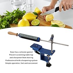 - Specification : Item Type : Kitchen Knife Sharpener System Material : Aluminum alloy , stainless steel Handle Material : Log Color : Blue , silver Purpose : Professional sharpening system , easy to operate , quick and easy sharpening Package List : 1 x Quick Fix Clip 1 x Grinding Stone Holder 2 x Angle Positioning Axes 1 x Height Setting Block(including bearing shaft) 1 x Screw 4 x Grindstone 1 x User Manual