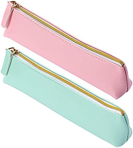 Vin Beauty 2 Pcs Leather Pencil Pouch, Slim Design Small Pencil Pouch Pencil Bag Zipper Pencil Case Bag Stationery Pouch Bag for Pens, Pencils, Markers