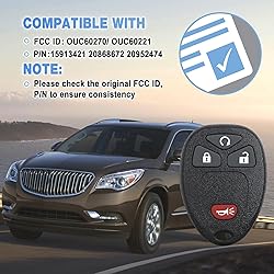 【Replacement Keyless Entry Remote】Compatible with FCC ID: OUC60270, OUC60221. P/N :15913421 20868672 20952474. Each key fob replacement is fully installed and is pre-tested to ensure quality and superb performance functionality. The use and function will be the same as the original unit.Before the purchase, make sure your car does have a factory installed keyless entry system with remote start. 【Built with Quality Performance】Kaboll replacement key fob are made of high-quality engineering plastic.The excellent workmanship and durable structure ensure quality of the product.100% brand new, never used replacement part .A great choice for your broken or lost car key fob ! 【Key Fob for Chevy GMC Buick】Kaboll car key fob is a replacement that fits for Buick 2008-2016 Enclave/Cadillac 2007-2014 Escalade ,2007-2008 SRX,for Pontiac 2007-2009 Torrent, Saturn 2007-2010 Outlook/2008-2010 Vue, Suzuki 2007-2009 XL-7/GMC 2007-2016 Acadia/2008-2015 Savana/2007-2013 Sierra/2007-2014 Yukon, for Chevrolet 2007-2013 Avalanche/2008-2015 Captiva Sport/2007-2014 Equinox/2008-2015 Express/2007-2013 Chevy Silverado/2007-2014 Suburban/2007-2014 Tahoe/2009-2016 Traverse 【EASY DIY PROGRAMMING】Self Programming is available and can be done from the convenience of your home. The purchase comes with an easy-to-follow instructional website link to self-program your remote. If you can’t program yourself ,we strongly recommend that you have your remote key fob programmed by a professional locksmith or dealer .( 2010+ Vehicles Required Qualified Locksmiths or Dealership for Programming) 【for Anyone Spare Key Fob】This backup key fob has high security features.It meets your full requirements exactly. For anyone you care about, for him, for her, friends, boyfriend, father. Obtain for Father's Day, Mother's Day, Veteran’s, Day, Christmas, Thanksgiving, New Year gift one for yourself as backup.100% SATISFACTION RISK FREE PURCHASE WITHIN 30 DAYS: If the remote does not hold up for any reason, simply contact us for a refund or replacement.