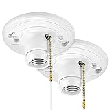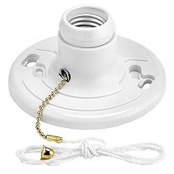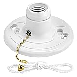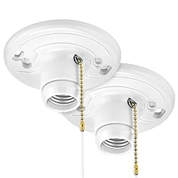 Medium Base Lamp Holder - Compatible with standard E26 light bulbs and features a 2" pull chain and 3' long string included. Versatile Bulb Compatibility - Works with wall switch (pull chain in on position), suitable for LED, incandescent, halogen, and CFL bulbs. Sturdy One-Piece Construction - Pack of 2, made of durable plastic for reliable installation and use. Ceiling Mounted Socket - Single circuit operation, mounts to J-Box, fits 3-inch or 4-inch electrical boxes. High Wattage Capacity - Max wattage of 660W, mounting screws included, 1-year warranty for reliable and efficient lighting solution Versatile Socket Placement - Add ceiling mounted standard E26 sockets in closets, garages, basements, utility rooms, and attics for enhanced lighting.