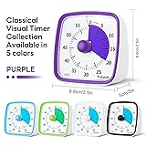 Yunbaoit Visual Timer with Night Light, 60-Minute Countdown Timer for Kids and Adults, Silent Classroom Timer, Time Management Tool for Home, School, or Work (Purple)