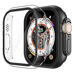 - Compatible watch series: This face cover is ONLY applicable to Apple Watch Ultra 3 (2025) / Ultra 2 / Ultra 49mm. Please make sure you are on the right series. Scratch and shock proof: High quality PC case can effectively prevent the watch from being scratched by hard objects in daily life or outdoor activities. It can avoid unnecessary damage to your watch. Preferred material: Hard PC material can make the case not easy to deformation and yellowing, can better protect your iWatch Ultra. Watching the screen through Tempered glass is close to the original screen display, which is comfortable for you to watch the screen. Products included: You will get 1 black protective cases with screen protector and 1 transparent protective cases with screen protector for Apple Watch Ultra 2 (2024 and 2023)/ Ultra 49mm. If you have any problems after receiving the product, please contact with us, we will provide you with the best solution.
