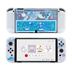 - GeekShare New Shark Party Protective Case for Switch Features in: Exclusive Design -- The shark party design is original and unique, no more boring black or gray color, we specially designed this case for the Switch. Ultra-thin and Comfortable -- This protective case is ultra-thin, sturdy but lightweight and the breathing hole will not make your consoles be hot, makes playing more comfortable. Split Design -- Easy to install and remove.Exact cut and design fits the switch console and joysticks perfectly. Item Specifications: Material -- High Quality PC material Package Includes: -- 1 X Switch Protective Shell Note: 1. Designed specifically for the Switch OLED only, NOT suitable for Switch or Lite. 2. All Switch accessories shown in images are for usage demonstration purposes only and are not included in the package. 3.We have tested that this protective case is dockable, which is slightly tight and does not affect the use. But due to the tolerance of the protective case and the dock, some dock may not be used.If you have any question,please contact our customer support.