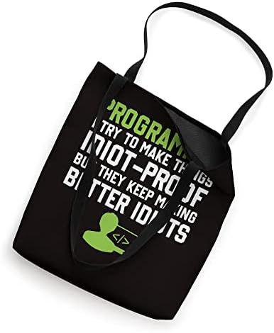 Perfect surprise for any programmer, software engineer and computer nerd, featuring the saying slogan "Programmer I try to make things idiot-proof but they keep making better idiots" if Software Engineering is your passion. If you love to write codes as an software developer then wear this Programming outfit while debugging your webpage or an game. This Programming Slogan Software Developer Computer Engineer item is designed by Computer Coder Programming Outfits.