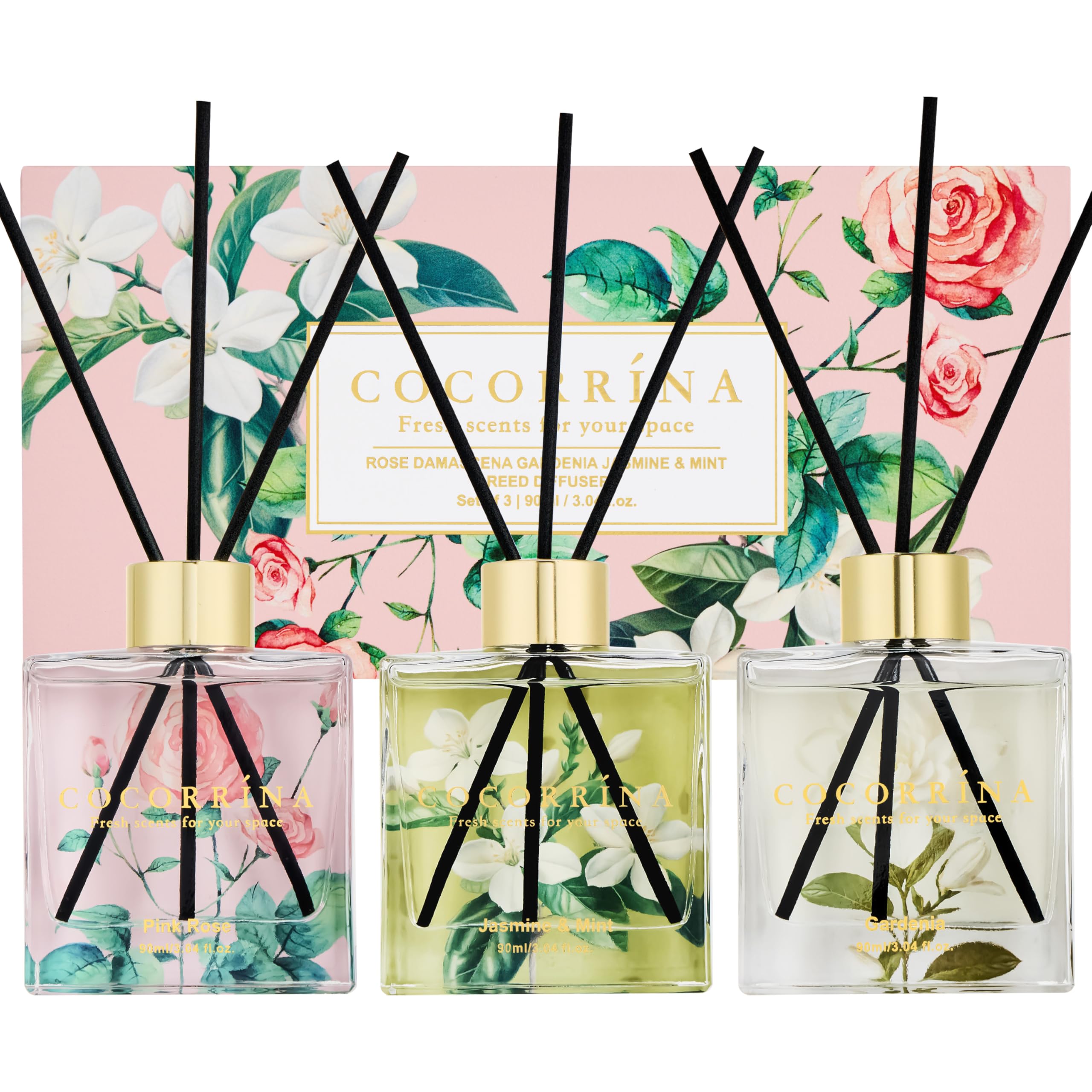 Cocorrína Reed Diffuser Sets, 6.7 fl oz. Black Forest Diffuser with Sticks Home Fragrance Reed Diffuser for Bathroom Shelf Decor