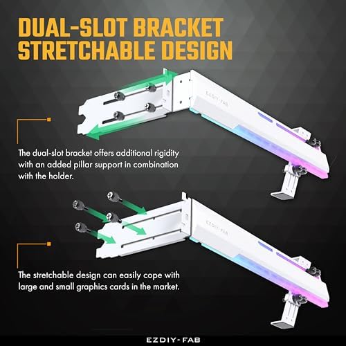 EZDIY-FAB 5V ARGB GPU Holder Brace Graphics Card GPU Support Video Card Holder Bracket, Strenchable Structure, Video Card Sag Holder/Holster Bracket Support RX7990XTX, RTX4090, White-341-1