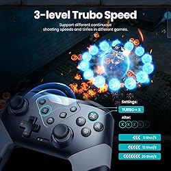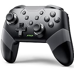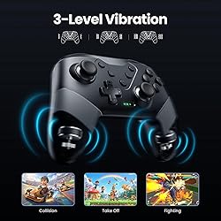 Compatible with Switch System: The switch controller is compatible with switch/lite/oled/pc windows (wired mode), works for 4 gamer; Switch pro controller is ideal for family fun, parties and nice gift for swtich game lovers (No amiibo) Programming Custom Buttons: 2 mappable buttons on the switch controllers are designed to map up to 16 keys to M1/M2 key, you can click one key and get ultimate skill, extending buttons life; 3 burst speed enhances your experience in action and arcade game Rumble Control & Gyro Sensor: Wireless switch controller has 4-level vibration; Enhanced dual motors provide you great game immersion; 6-axis gyro sensor makes the pro controller switch quickly detect the actions and help you make a quick response Ergonomic & Long Time Play: Thousands of tests obtained scientific shape and weight to make the switch wireless controller suitable for long-term and comfortable holding; Large capacity battery last up to 15 hours of uninterrupted gaming 33ft Wireless Control: 33ft wireless control range allows players to stand/lie/sit to play games according to the situation; You will Get: 1 X Pro switch controller, 1 X Type-C cable, 1 X User manual, 1 X Packing box; Great gifts for friends and family