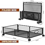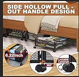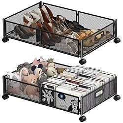 【High-quality Metal Containers】It has 4 Silent Plastic Wheels. The load-bearing capacity of this carbon steel cart is up to 22 pounds, way beyond the traditional plastics carts or non-woven materials carts 【Tool-free Assembly】The installation is so easy that you can install it in less than one minute. Just put the four wheels on the frame and then put the shelf onto it. 【Wide Application】It's great for seasonal under bed clothes and shoe storage, bedding storage and more. because of the rolling design, it can also be used as under bed drawers on wheels.It can to make your tiny space a new look! 【Foldable Design 】 Folded Size: 15.9×11.4×2.4 inches. Unfolded size 23.6×15.9×6.2 inches,No waste of space in use or placement. 【360 DEGREE ROTATING WHEELS】With 4×360-degree swivel wheels, this under-bed storage container moves around the home easily,2 of the wheels have a locking function, when you need it to stay still, you just press the locking mechanism .
