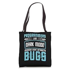 Programmers like dark mode because light attracts bugs Tote Bag