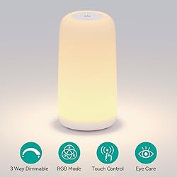 Versatile RGB Touch Lamp: The table lamp create a cozy and inviting atmosphere with the gentle, flicker-free light. Adjust the small table lamp color to match your mood with the cycle RGB mod, dimmable and perfect for illuminating any space for every occasion. Upgraded Night Light Mode & 3 Brightness Levels: Instantly access soothing sleep mode with a 3-second press, offering the perfect dimness for tranquil rest. Sleep peacefully with our upgraded lamp for bedroom. One tap choose from low (10%), medium(50%), and high (100%) brightness options for reading, sleeping, or thinking. The standing lamp with touch control sensor on top makes it easy to turn on and off. Sleek Design Modern Lamp with Power Cord: Our modern nightstand lamp features a smooth white lamp shade for even illumination. The anti-slip pad keeps it steady on any surface, durable and easy to maintain, it won't fade over time and is designed to improve your quality of life. Multi-Use Smart Lamp: The led lamp for bedroom elevate your space with the modern elegance of our dimmable lamp . Perfect for use it as a nightstand lamp, baby nursery lamp, reading lamp, or romantic atmosphere light. Aesthetic Gifts Lamps for Everyone: This bedside lamp is perfect for home and office decoration and makes for the best practical birthday present gift for friends, colleagues, adults, women, kids, and families. Lamp Sets:This is an integrated product that comes with a light, charger, cord and other components for both indoor and outdoor use, this kit provides a complete unit that makes it easy to get the lighting effect you need, as well as providing long-lasting and reliable lighting when you need it!