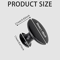 - Product Specifications: Product Name: Round Cabinet Knobs Materials: Zinc alloy, Iron Diameter: 1.18" (30mm) Height: 0.82" (21mm) Base Diameter: 0.67"(17mm) Color: Flat Black Package Including: 10pcs x Round Cabinet Knobs 10pcs x Mounting Screws Note: -Due to manual measurement, please allow an error of 1-3mm. -Please note, for your health and safety, this brass fitting is not suit for drinking water. Quality Assurance: Zorfeter promise to provide you with good quality products and services to make sure your satisfaction. Any product problems or defects, you can contact us by Amazon order number for refund or replacement. ORDER NOW by clicking Add to Cart!
