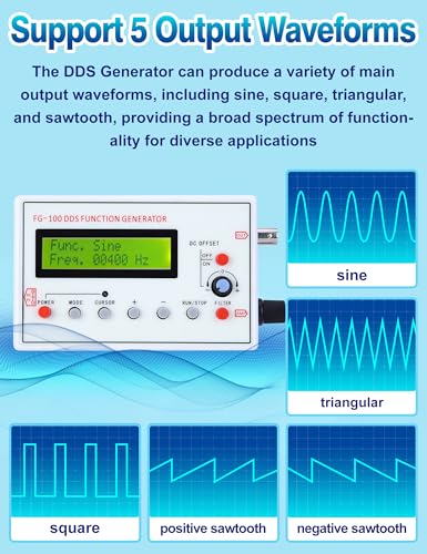 - Application: The DDS function generator is very suitable for the oscilloscope' time calibration factor, due to the high and stable frequency of the DDS.