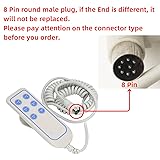 NOTE: 8 Pin round male plug, if the End is different, it will not be replaced. Please pay attention on the connector type before you order. WIDE APPLICATION: This hand controller is widely used in smart home, home wall cabinet, folding bed, lifting table and other purposes. BACK DESIGN: The hook design on the back of this hand controller is very practical, you can it at any time, and it is not easy to lose. PVC MATERIAL: This hand controller is made of PVC material, which is stable and drop very . EASY TO OPERATE: There are clear and easy to understand pictures on the buttons, no complicated steps, and the electric bed can be controlled by pressing the button. IP66: The level of this hand controller is IP66, which is very and and has a long service life.