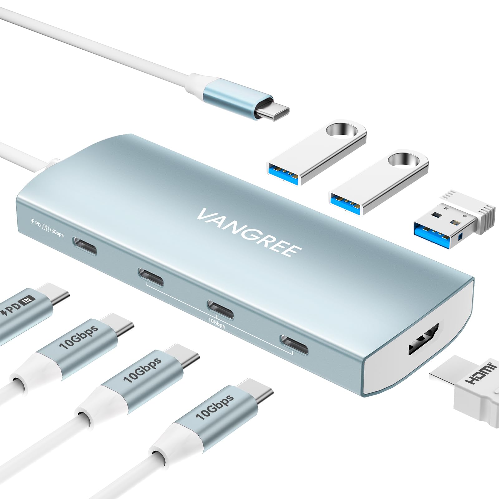 - 3 QC 24W Fast Charging Ports: VANGREE Powered USB 3.2 Hub offers 3 individual quick charging(QC 3.0) ports, with each port capable of providing 24W power independently. You will enjoy high speed charging with all USB-A /USB-C cable compatible devices.