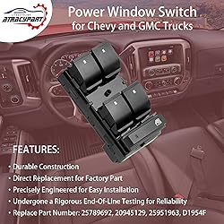 - Replacement For:2007-2013 Chevy Silverado 15002007-2014 Chevy Silverado 2500 HD 2007-2014 Chevy Silverado 3500 HD2007-2013 GMC Sierra 15002007-2014 GMC Sierra 2500 HD2007-2014 GMC Sierra 3500 HDPackage Included:1X Master Power Window Switch1X Driver Side Mirror Switch1X Driver Side Door Lock Switch.Replaces OE#:Master Power Window Switch: 25789692, 20945129, 25951963, D1954FMirror Switch: 22883768, 25778970, 901182Door Lock Switch: 15804093The Material:ABS plastic & PP plasticWarranty:24-MonthAt ATRACYPART, we take pride in the quality of our products and in your satisfaction. If you have any problems, do not hesitate to contact us.