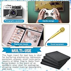 Ample to Use and Share: you will get 4 pieces of black foam inserts for cases, adequate to satisfy your daily use and replacement demands, protecting your valuables from breaking Appropriate Size to Use: our polyethylene foam sheet measures about 16 x 12 x 1.5 inches/ 41 x 30.5 x 3.8 cm (L x W x H), large enough to cut into your desired shapes and dimensions for your various needs Reliable Material: the packing foam for cases is made of polyurethane foam, lightweight and soft, which can provide soft cushioning for your items, but without causing too much burden to your package or suitcase Protective for Packing: our black craft foam is ideal material for protecting your valuables from bump and harm; Further, it comes with a simple rectangle shape, convenient to cut and well fit for most items' shapes according to a variety of purposes Wide Range of Uses: the toolbox foam inserts are ideal for buffering electronics, tableware, porcelain, glasses, small auto parts, jewelry or other fragile items from being broken in the event of an accident, also ideal for packaging, shipping, model making, decorations and more