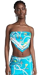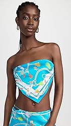 - Turn heads in SER.O.YA's Natalia Silk Scarf Top. This strapless top features a tie back detail and triangular hem, showcased here in Bandana Print. Crafted with 95% Silk and 5% Spandex, made in China. Model wears size S. SER.O.YA, established in 2020, is a New York-based label dedicated to elevating your wardrobe with effortlessly cool, timeless designs. Known for breathable knits, vintage denim, and luxurious fabrications, their minimalist collections offer maximum style for easy, versatile dressing.