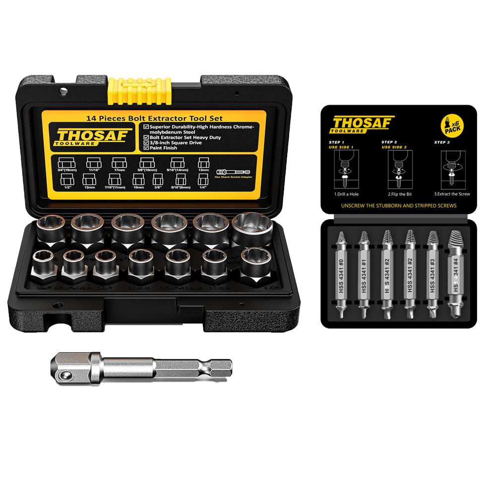 - APLICABLE A LA MAYORÍA DE TALLERES: 6 piezas de extratores de tornillos funcionan con cualquier taladro y todos los tamaños de tornillos o pernos (3-12mm), Estas herramientas extratoras se utilizan para revertir el tornillo dañado en sentido contrario a las agujas del reloj hasta que se libera. ¡Las Herramientas DIY para Hombres no sabrán que necesitan un juego de extratores de tornillos hasta que lo tengan! Este juego de extratores de tornillos está DISPONIBLE PARA ENVOLVIR REGALOS, puede ser regalado a sus seres queridos ya que refleja una nueva tendencia divertida y práctica. Herramientas increíbles y únicas para regalos para hombres y mujeres. Los imprescindibles para regalos navideños para hombres, regalos para papá, marido, padre, para él, para chicos adolescentes, adultos, novio, hijo en cumpleaños, Navidad, Día del Padre o aniversarios. Guía perfecta de regalos navideños