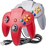 2 Pack Classic N64 Controller, miadore N64 Wired USB PC Game pad Joystick, N64 Bit USB Wired Game Stick Joy pad Controller for Windows PC MAC Linux Raspberry Pi 3 Sega Genesis (Gray/Red)