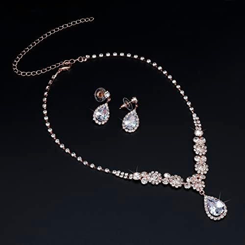 COCIDE Bride Jewelry Set Silver Crystal Wedding Necklace Earrings Bridal Rhinestone Teardrop Pendant Accessories for Women and Bridesmaids (3 piece set - 2 earrings and 1 necklace)