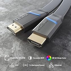- HDMI cable flat – 6.6ft – 4K@60Hz (flat cable for laying – extra copper for up to 18Gbit/s, High Speed HDMI with Ethernet, Blu-ray/PS5/Xbox/Switch, black) by CableDirect