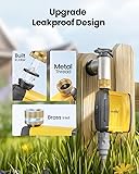 Easy App Control: The user-friendly app and guide enable you to quickly connect the sprinkler timer to 2.4Ghz WiFi, making your sprinkler timer smart and you can control it from your smartphone anytime, anywhere.Brass water inlet is adopted to reduce the wear of the water timer and faucet thread, which can withstand greater water pressure and is more durable(only connects to 2.4GHz WiFi) Weather-Based Watering: The WiFi hose timer continuously adapts to local weather, automatically optimizing watering schedules. It will automatically delay watering for 24/48/72 hours when it rains and supplement watering when it is dry.(The supplementary watering time is the set manual watering time) Volume And Soil Based Watering: The 3rd GEN WiFi Watering Timer allows you to water by volume, so you can water as many gallons as you want. For example, when your vegetable patch only needs 8 gallons of water, the timer will only water 8 gallons. In addition,it is paired with the WiFi soil sensor (not included), it can automatically adjust the watering schedule according to the detected soil moisture, keeping your soil moist but not soggy and avoid overwatering Timed-Based Watering: The WiFi sprinkler timer has 3 watering plans & 2 watering modes. Each with different start time, duration(1min-11h59min) and watering frequency(Mon-Sun). In Irrigation Mode, it will run non-stop during watering, suitable for lawn and pool. In Mist Mode, it will run 5~59 sec and interval 1sec~15min59sec during watering, suitable for misting system, summer outdoor cooling and dust reduction. Note: The WiFi water timer only connect with 2.4GHz WiFi. If your router is a dual-band router, please independently enable the 2.4GHz WiFi band and name it differently from the 5GHz WiFi band. We have local sevice team in the United States, if you have any issues about our products, please feel free to contact us. One WiFi hub can be paired with 4 WiFi sprinkler timers (1-Zone or 2-Zone)