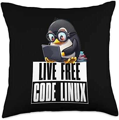 Live Free Code Linux Nerd Tux Nerdy Penguin Coding Throw Pillow