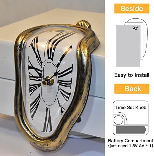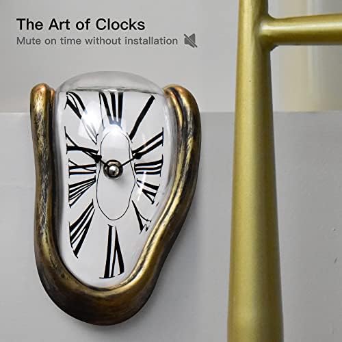 Melting Clock Dali Melted Clock Gift Decor Art Inspired Wall Clock Twisted Shelf Hanging Surrealist for Decorative Shop Office Home Desk Roman Antique Gold…