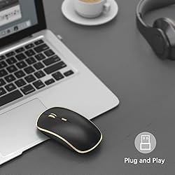 JOYACCESS Silent Wireless Mouse, Portable USB Mouse with 5 Adjustable DPI Levels for Desktop, Notebook, MacBook, Chromebook, PC (Black Gold)