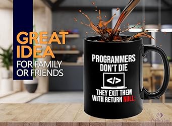 Flairy Land Programmer Coffee Mug 11oz Black - Programmers Don’t Die They Exit Them With Return Null; - Gift for Programmers Geeks Nerds IT Students Graduates and Tech Support Pros