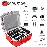 Red & White Hard Shell Carrying Case For Nintendo Switch/Switch OLED, Large Deluxe Waterproof Travel Bag Fits Switch Console & Full Set Accessories, with Removable Shoulder Strap & 21 game slot.