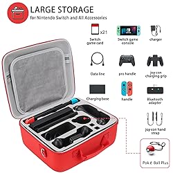 BEAUTIFUL DESIGN: This carrying case for Nintendo Switch is designed with White & Red color pattern, Clear pattern, bright colors, made of eco-friendly material, it’s the warm memory of game fans, Also an ideal gift for family or friends. PERFECT DEVICE PROTECTION: PERFECT DEVICE PROTECTION: The durable hard travel carrying case Adopt Multi-protection design, with high-quality EVA interior lining, Multi-layer waterproof nylon shell design and a soft game card storage board that provides excellent protection for your Switch, protecting Nintendo Switch from drops, scratches, bumps, splash and dust. LARGE CAPACITY: The Switch carrying case fit complete Nintendo Switch system(switch console, dock, power adapter, joy-con grip, joy-con straps, and HDMI cable) and extra Switch Pro controller, hold 21 game cards and Pokeball Plus, with mesh pocket. Portable:Comes with a comfort shoulder strap and non-slip handle to easily carry all of your switch set on trip. No Worry to Purchase: Each carrying case for Nintendo Switch undergoes rigorous quality testing at the factory. If you have any questions about this carrying case for Nintendo Switch, please feel free to contact us.