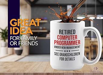 Flairy Land Computer Programmer Coffee Mug 15oz Black - Retired computer programmer - Computer Science Tech Web Developer IT Database Programming Coding Software